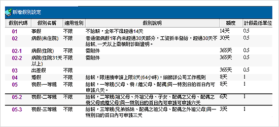請假假別設定